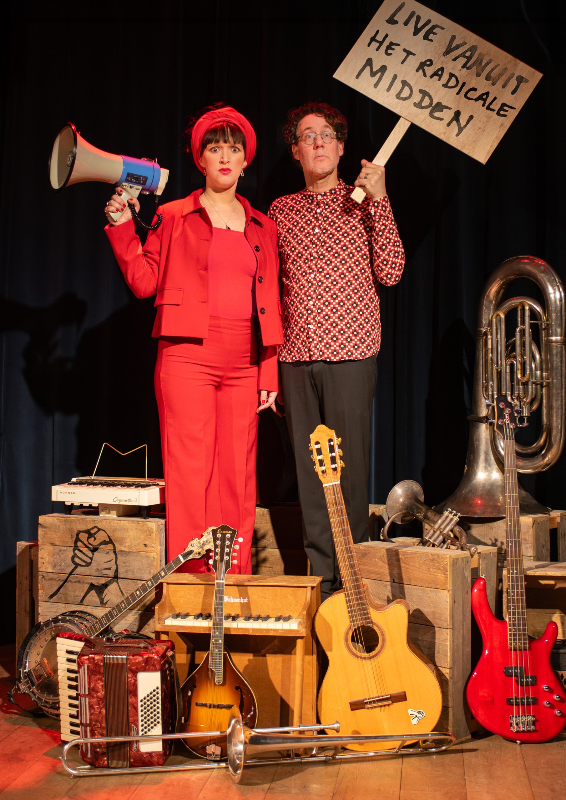 Vanuit het radicale midden zingen Dorfmann & Bos liederen over vrijheid, strijd, solidariteit en troost. Met de vinger op de lippen zoeken ze zachtjes schreeuwend naar de nuance. Gewapend met een fraaie verzameling Franse en Nederlandse chansons, persoonlijke verhalen, een flinke dosis humor en negen instrumenten, gaan zij de barricade op.