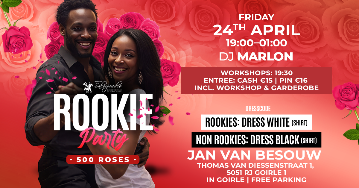 De Rookie Party doet wat dat betreft niet onder voor een “gewoon” dansfeest. We draaien de lekkerste Salsa’s en Bachata’s, waar ook de gevorderde danser volop van zal genieten. Bedenk als advanced danser bovendien dat je pas echt een gevorderde danser bent, als je ook de beginnende danser kan laten stralen op de dansvloer!