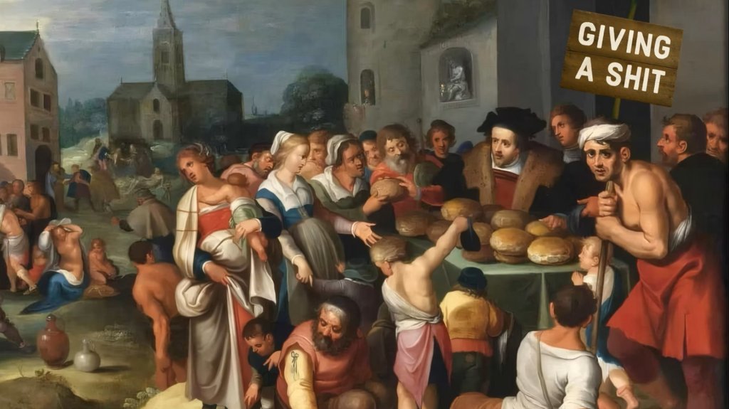 ‘Giving a Shit – mens blijven, juist nu’ brengt muziek, kunst en filosofie samen in een verhaal over medemenselijkheid. Centraal staan de eeuwenoude ‘Zeven Werken van Barmhartigheid’ zoals de hongerigen voeden, de zieken bezoeken en vreemdelingen huisvesten. Deze worden vertaald naar actuele thema’s als ontwikkelingshulp, vrijwilligerswerk en dakloosheid onder arbeidsmigranten.